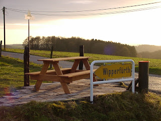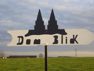 Dort hat ein weitsichtiger Mensch ein Schild aufgestellt und vor kurzem sogar einen kleinen Rastplatz erstellt. Denn dieser Standpunkt ist ein ganz besonderer. Bei klarer Sicht, etwa wie gestern Mittag, lässt sich am Horizont gut der Kölner Dom ausmachen.